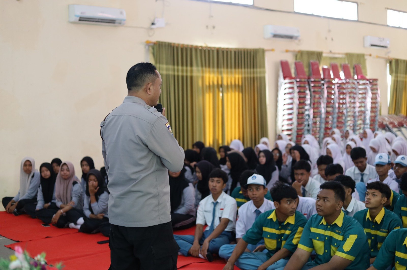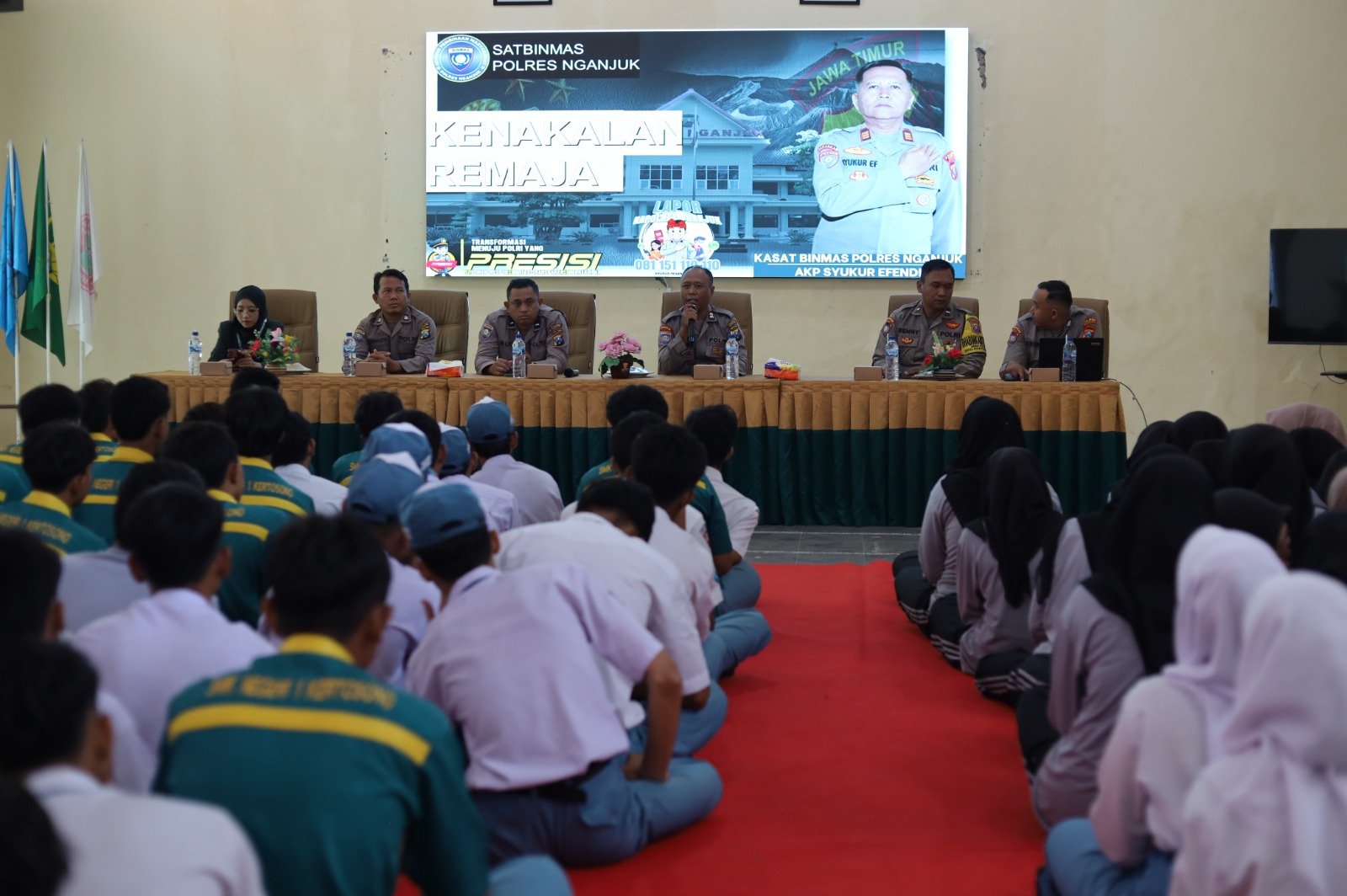 174 Siswa SMKN 1 Kertosono Ikuti Bimbingan Dan Penyuluhan Bahaya Narkoba Dan Kenakalan Remaja Dari Unit Binmas Polres Nganjuk