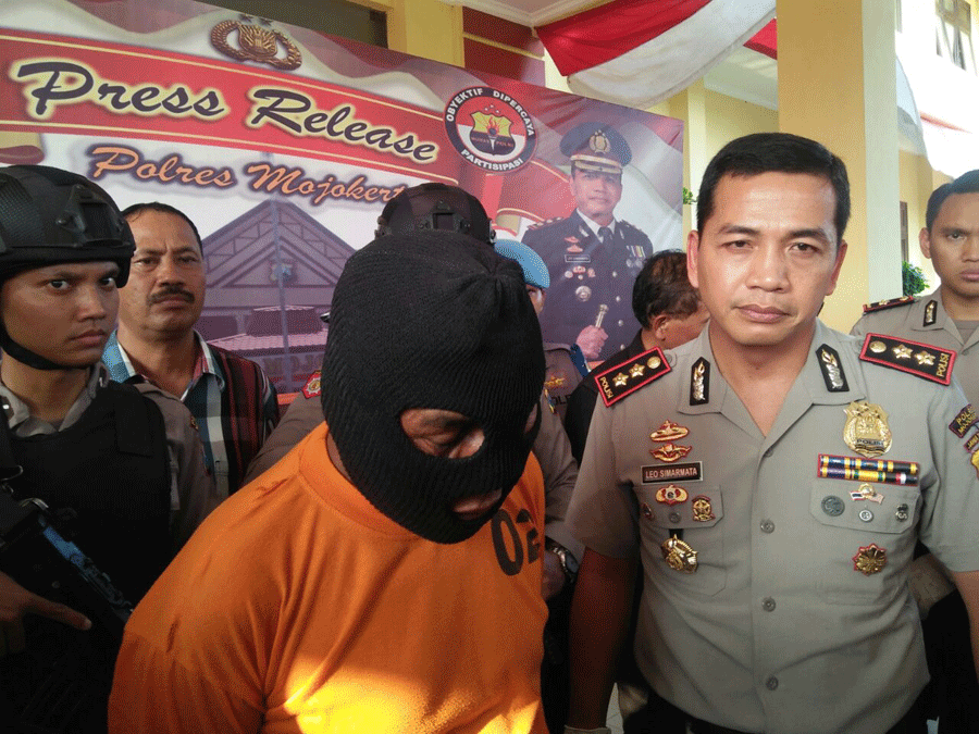 Dalam Press Release yang dipimpin Kapolres Mojokerto AKBP Leonardus Simarmata pada selasa (22)/8/2017) pukul 14.00 WIB, Kapolres menyampaikan kronologi penangkapan Saiman (pelaku).