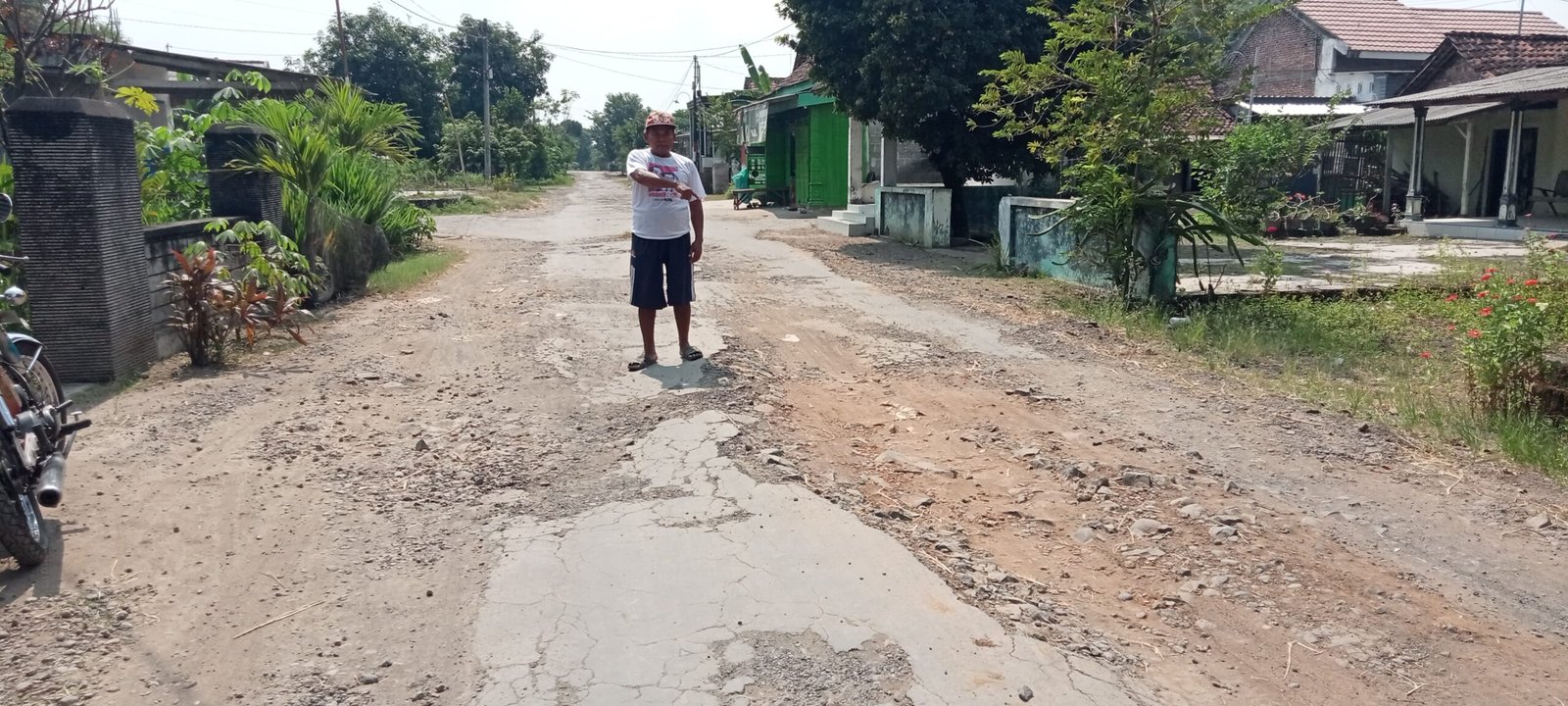 ” Belum lama ini saat musim hujan ada pengendara yang jadi korban laka akibat terperosok ke lobang jalan,” ucap Mustopo warga setempat.