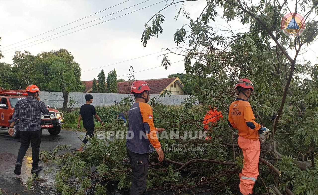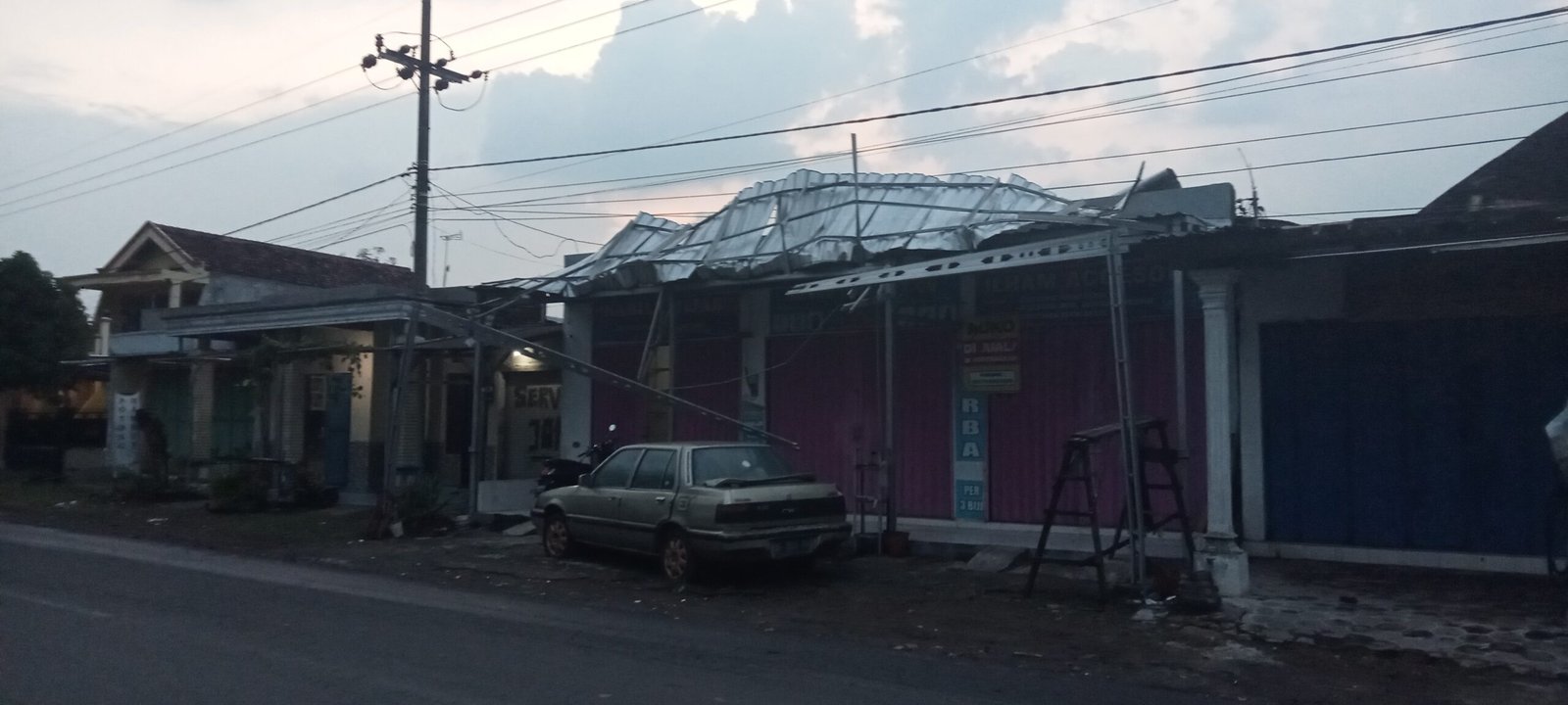 Tidak sedikit ada sejumlah atap dan teras rumah penduduk porak poranda diterjang angin puting beliung. Termasuk bekas warung makan dan puluhan pohon besar ditepi jalan raya tumbang menimpa kabel bertegangan tinggi milik PLN.