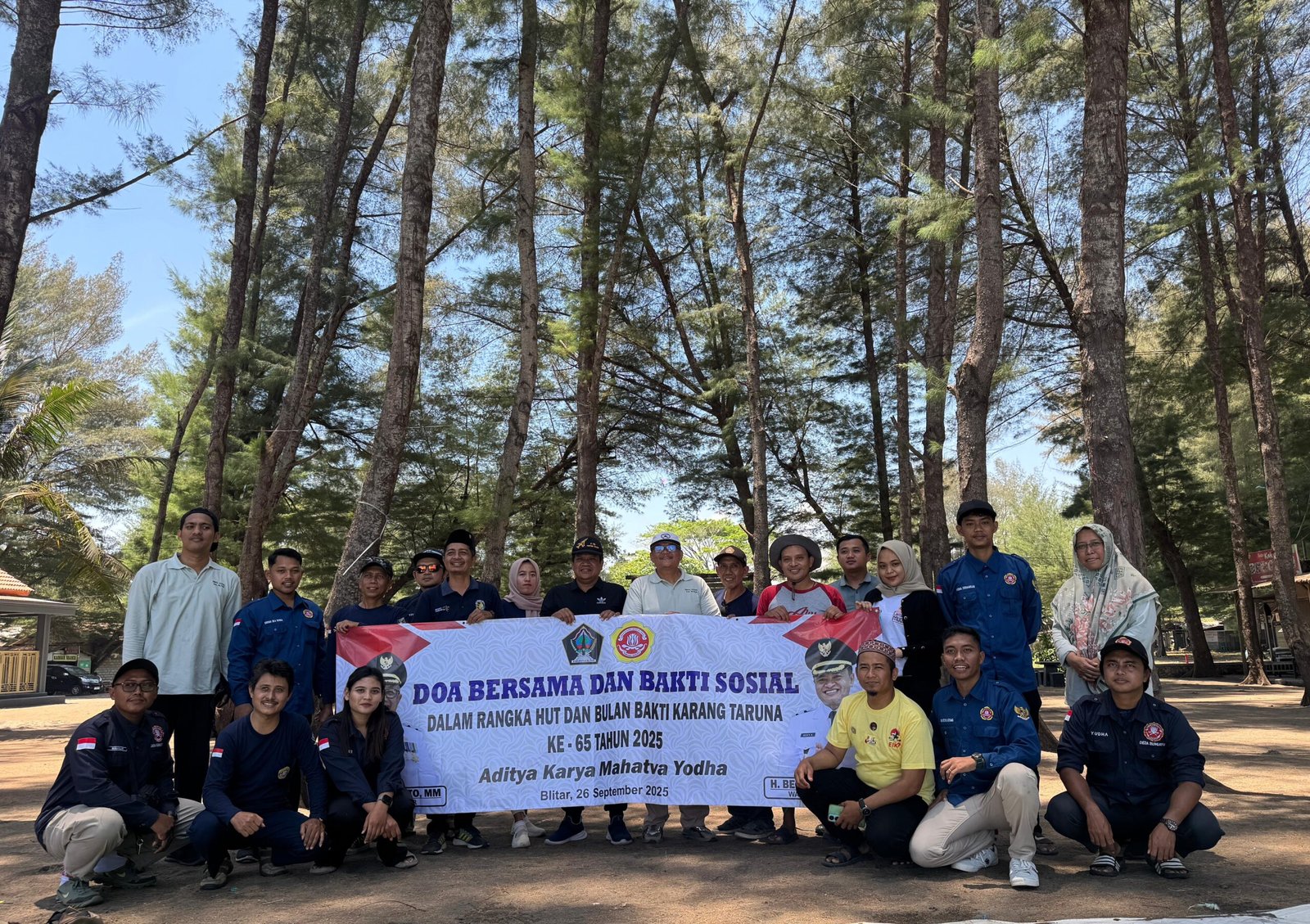 Memperingati Bulan Bakti Karang Taruna ke-65 tahun, Karang Taruna Kabupaten Blitar berkegiatan membersihkan sampah di Pantai Serang, Desa Serang, Kecamatan Panggungrejo, Kabupaten Blitar, Jumat (26/09/2025).