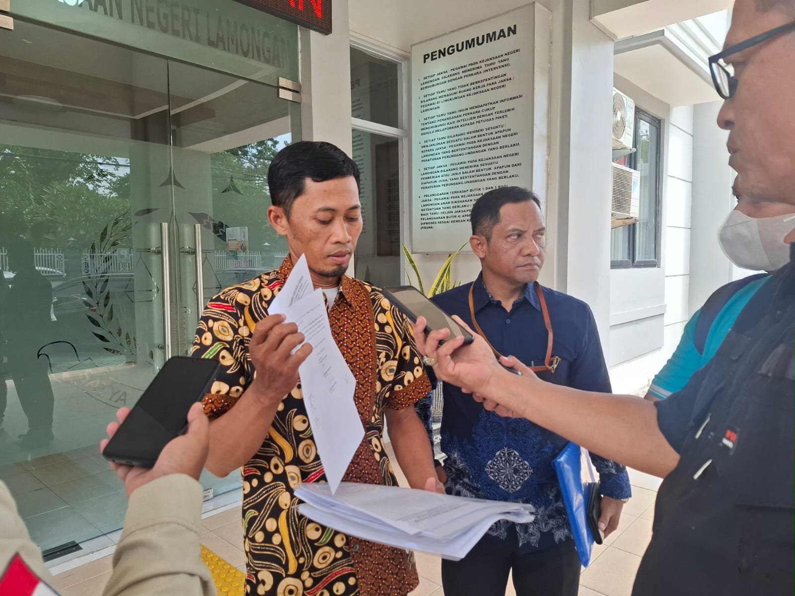 “Kami datang ke sini, dalam rangka untuk meminta salinan berita acara pemeriksaan, karena itu merupakan hak daripada tersangka sebagaimana pasal 72 KUHAP yang menyatakan,” atas permintaan tersangka atau penasehat hukumnya pejabat yang bersangkutan memberikan turunan berita acara pemeriksaan untuk kepentingan pembelaan,” ujar Muhammad Ridlwan didampingi rekannya Ainur Rofik, di depan kantor Kejari Lamongan.