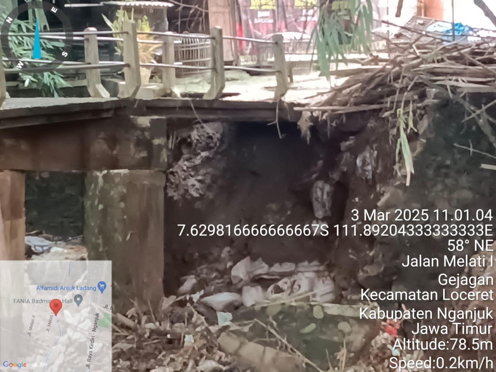 NGANJUK, MEMO – Dihantam banjir saat hujan deras pada kamis malam ( 28/02/2025) sekitar pukul 17.00 WIB silam, jembatan swadaya di Desa Gejakan Kecamatan Loceret,Nganjuk ambrol..