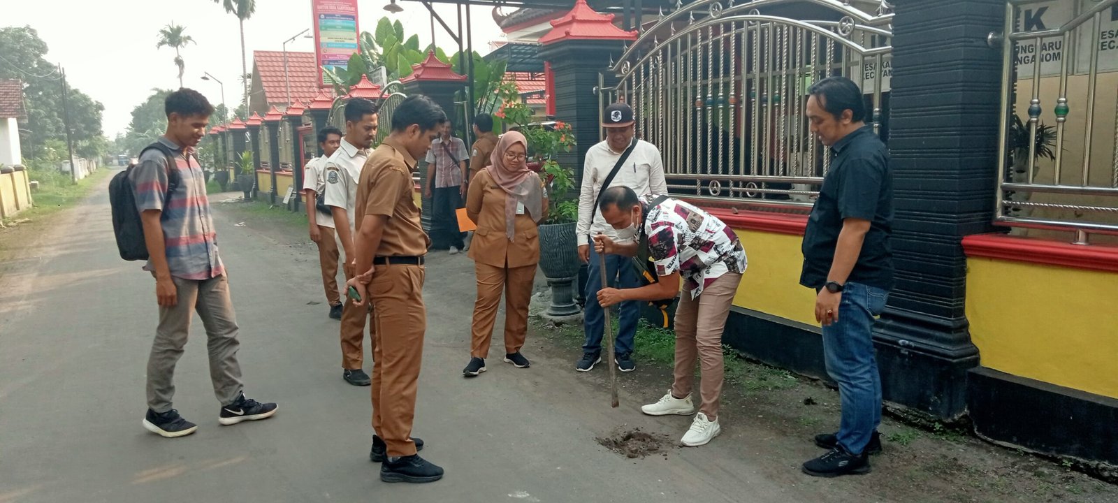 Hampir dua jam lebih rombongan berada di ruang kerja kepala desa. Begitu keluar dari ruangan rombongan tersebut langsung menuju jalan aspal lapen yang baru saja selesai dibangun yang lokasinya persis berada di depan balai desa setempat.