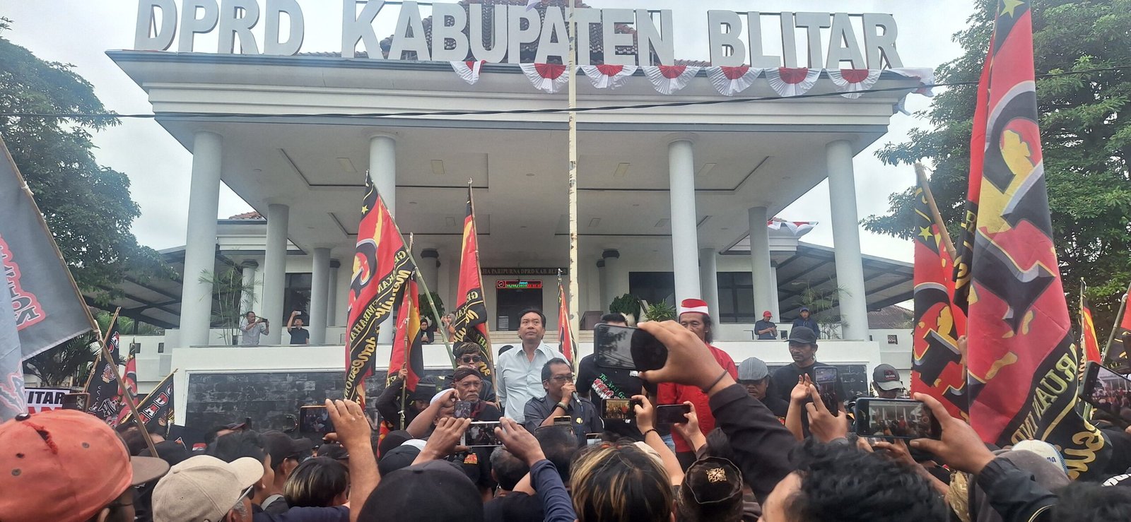 Ratusan massa yang tergabung dalam Gerakan Pembaharuan Indonesia (GPI) menggelar aksi unjuk rasa di depan Gedung DPRD Kabupaten Blitar, Jumat (29/8/2025).