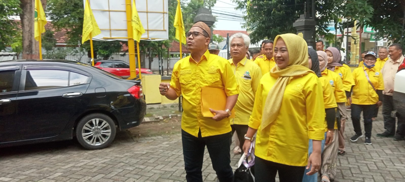 Selain didampingi istri tercinta, politisi kawakan yang sudah mengabdikan diri ikut membesarkan partai berlambang pohon beringin selama kurang lebih 12 tahun itu juga mendapat dukungan penuh dari 20 Pimpinan Kecamatan ( PK) Partai Golkar tumplek blek memenuhi kantor DPD.