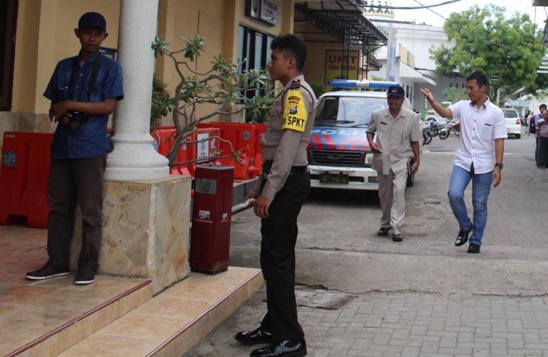 FOTO ; Mantan Kepala Dinas PU Pengairan ,Hoedoyo saat akan masuk keruang pemeriksaan KPK di aula Mapolres Nganjuk .