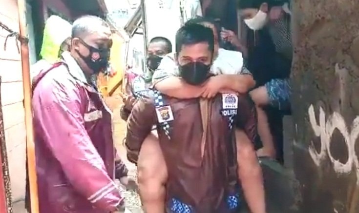 Sejumlah anggota Polri berjibaku mengevakuasi korban banjir di Jakarta dan sekitarnya. Mereka menyusuri satu persatu rumah warga yang teredam banjir sejak Sabtu (20/2/2021) hingga Minggu (21/2/2021).