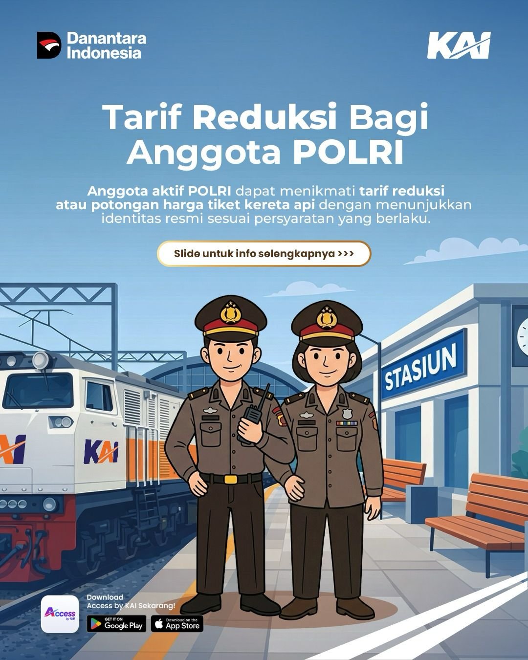 KEDIRI, MEMO- Sebagai bentuk apresiasi atas pengabdian kepada negara, PT Kereta Api Indonesia (Persero) terus konsisten memberikan layanan tarif reduksi atau potongan harga tiket kereta api bagi anggota aktif TNI dan POLRI. Namun, guna meningkatkan ketertiban administrasi dan validasi data, terdapat penyesuaian prosedur bagi anggota TNI dan POLRI yang ingin menikmati fasilitas ini.