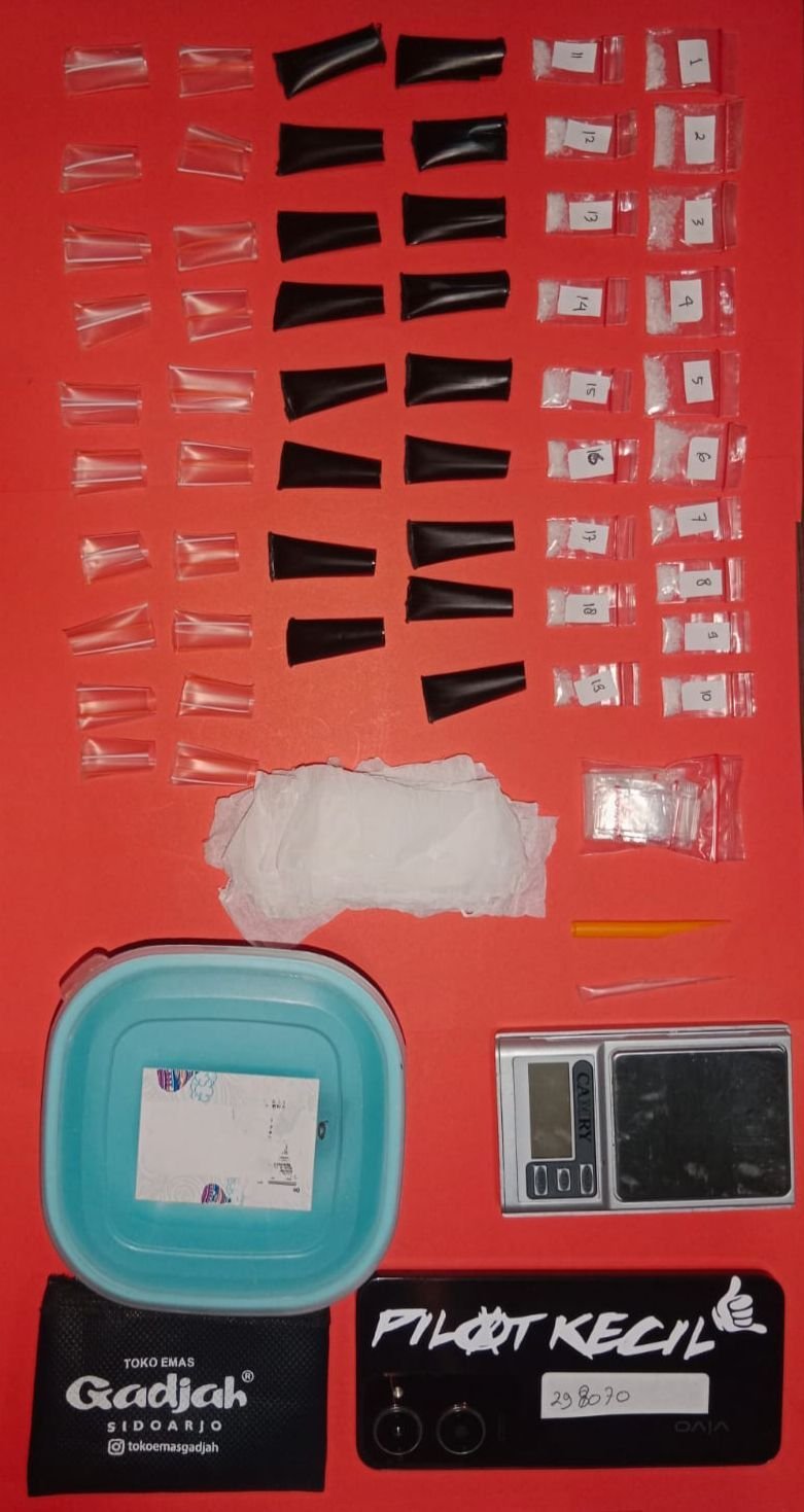 Kasi Humas Polres Lamongan Ipda M. Hamzaid menyampaikan bahwa penangkapan tersangka dilakukan sekitar pukul 17.45 WIB di sebuah rumah yang berada di Dusun Delik. Dalam penggeledahan yang dilakukan di lokasi, petugas berhasil menemukan sejumlah barang bukti yang menguatkan dugaan peredaran narkotika yang dilakukan oleh tersangka.