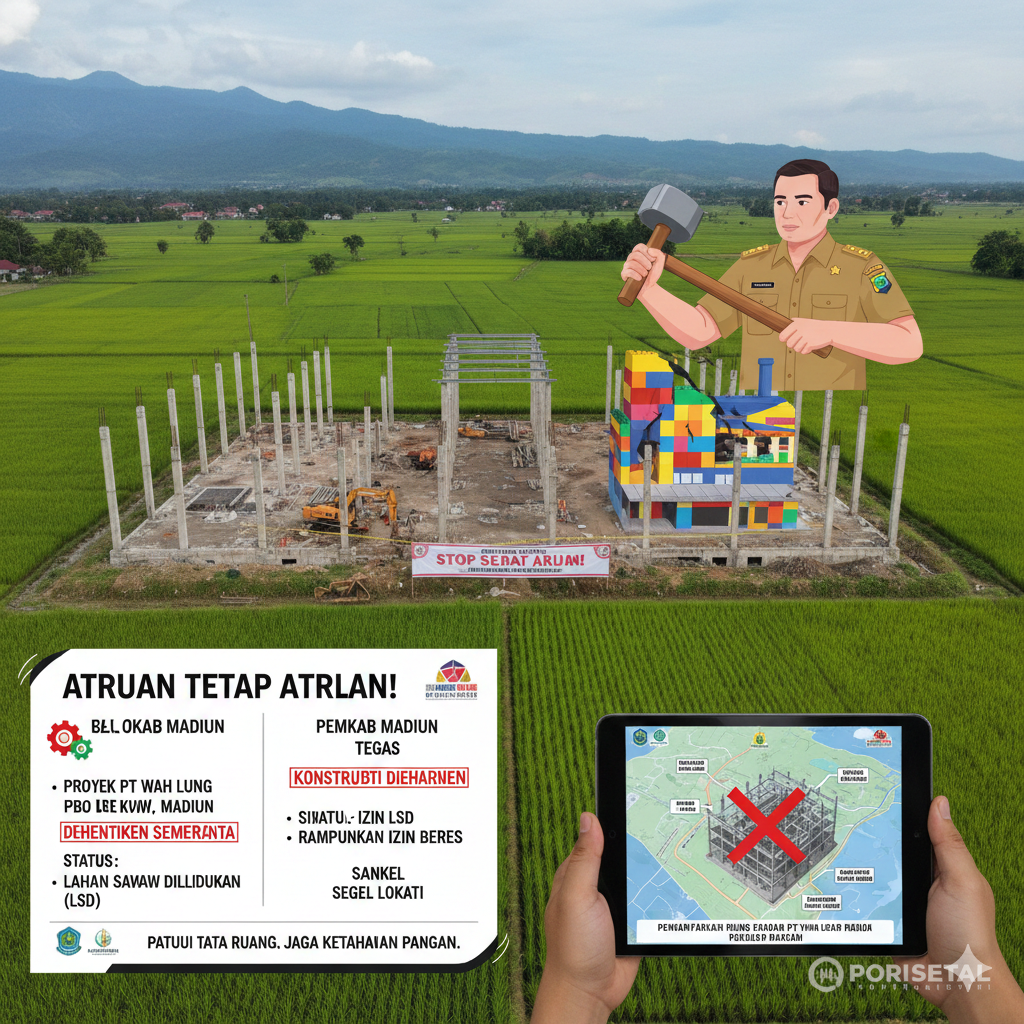 Pemerintah Kabupaten Madiun melalui Dinas Penanaman Modal dan Pelayanan Terpadu Satu Pintu (DPMPTSP) serta Dinas Pekerjaan Umum dan Penataan Ruang (PUPR) menunjukkan integritasnya dalam menjaga tata ruang wilayah. Proyek besar pembangunan pabrik mainan PT Wah Lung Indonesia yang menempati lahan sekitar 6 hektar di Desa Kuwu kini sedang berada dalam pengawasan ketat. Masalah utamanya terletak pada penggunaan lahan yang masih berstatus Lahan Sawah Dilindungi (LSD), sebuah kategori lahan yang memiliki perlindungan khusus dari pemerintah pusat untuk menjaga ketahanan pangan.