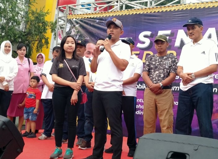 Kapolresta Kediri AKBP Miko Indarayana, bersama Forkompimda Kota Kediri, berjalan bersama ratusan peserta yang menghadiri kegiatan jalan sehat dan Senam Kediri Sehat.