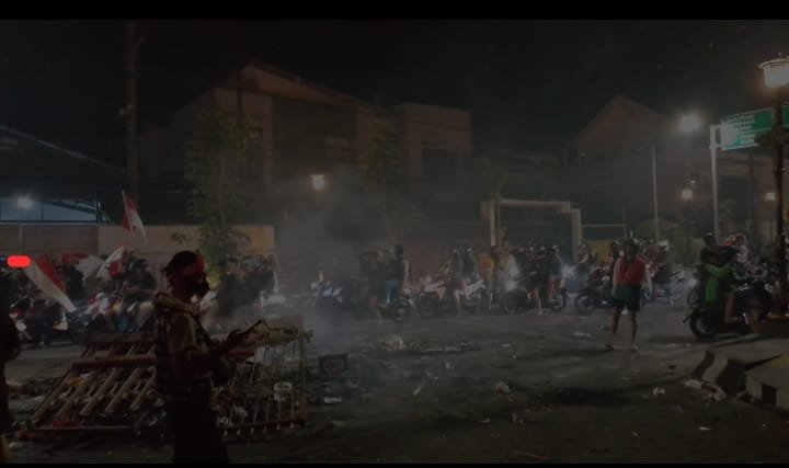 Suara bising kendaraan bermotor dan teriakan massa memecah keheningan malam di Jalan Soekarno Hatta, Kabupaten Kediri, pada Sabtu tengah malam hingga Minggu, dini hari (31/8/2025).