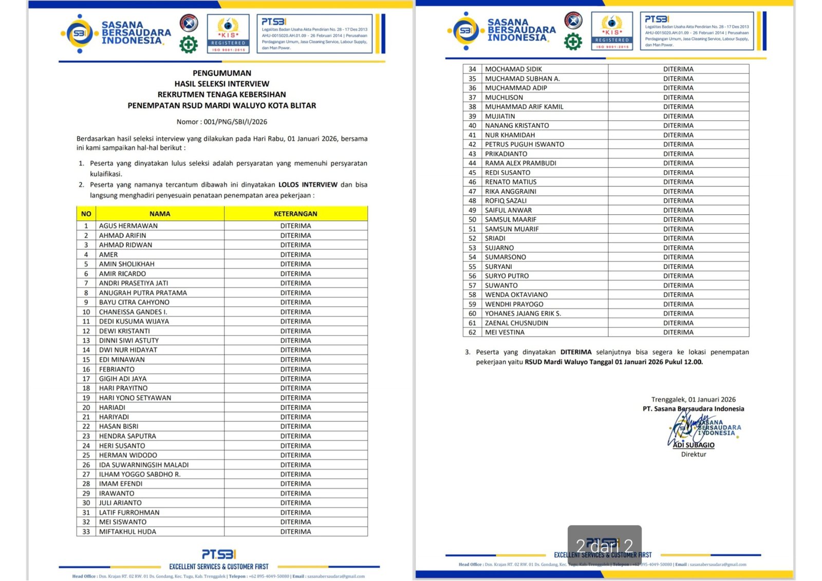 Lebih aneh lagi, dari total 62 orang yang dinyatakan lolos, hanya 9 orang yang tetap dipertahankan untuk bekerja.