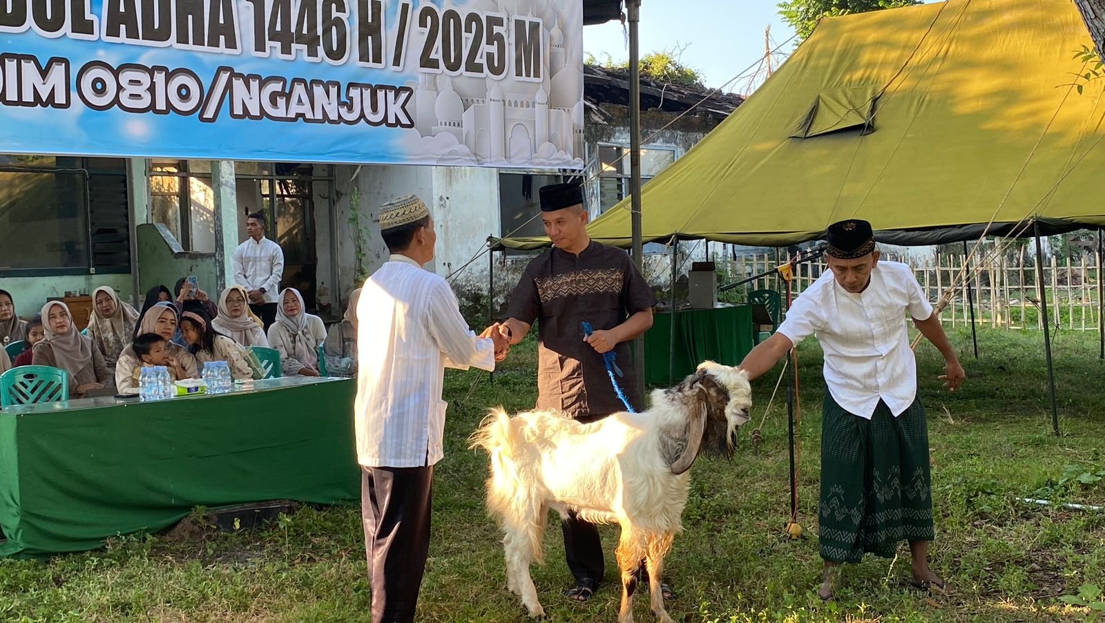 Penyembelihan hewan korban dilaksanakan pada hari ini ( Jum’at, 06/06/2025 ) pukul 06.15 wib s.d Pkl.14.30 WIB bertempat di Masjid Baitusalam asrama militer Kodim 0810/Nganjuk, Desa Ploso Bedingin, Kec. Loceret, Kab. Nganjuk.
