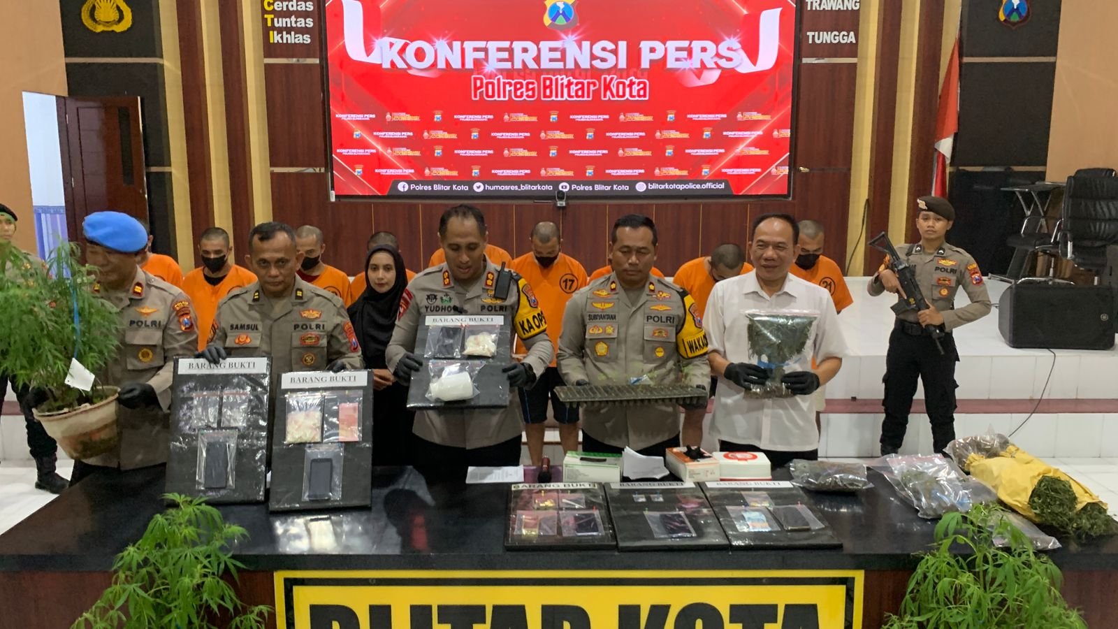 Perang melawan narkoba kembali mencuat di Kota Blitar. Dalam operasi besar-besaran, Satresnarkoba Polres Blitar Kota membongkar jaringan pengedar obat terlarang yang beroperasi lintas daerah. Hasilnya bikin geleng kepala: ribuan pil dobel L, sabu siap edar, ganja kering, hingga ratusan batang tanaman ganja ditemukan berserakan dari tangan para tersangka.