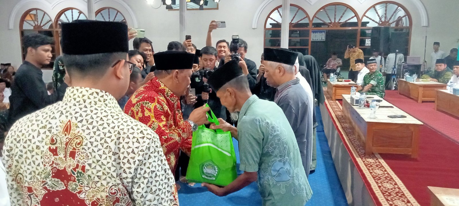 Usai sambutan, Habib Ubaidillah, Bupati Marhaen, dan Wabup Trihandy didaulat menyerahkan santunan secara simbolis. Keesokan hari paket tersebut diberikan kepada masing-masing penerima di tempat yang sama dan buka puasa bersama.