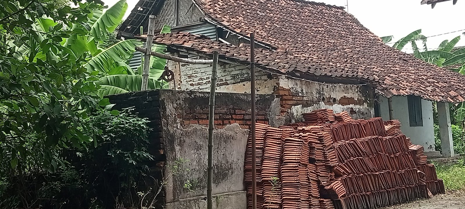Sebetulnya, masih kata nara sumber material bantuan berupa genting dan kayu bekas sudah didatangkan beberapa bulan yang lalu. Dan sudah menumpuk di samping rumah Fitriya.