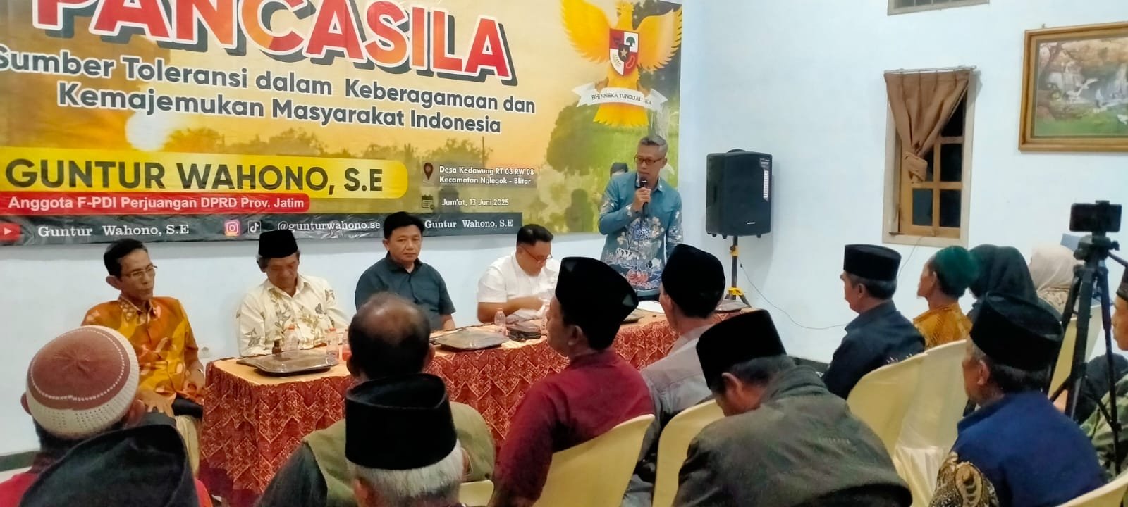 Anggota DPRD Provinsi Jawa Timur dari Fraksi PDI Perjuangan, Guntur Wahono, SE, kembali menunjukkan komitmennya terhadap pembangunan karakter kebangsaan dan ketahanan pangan nasional. Lewat kegiatan sosialisasi bertema “Pancasila Sumber Toleransi dalam Keberagaman dan Kemajemukan Masyarakat Indonesia”, Guntur mengajak para petani untuk memperkuat nilai persatuan dan gotong royong dalam menghadapi tantangan pertanian modern.