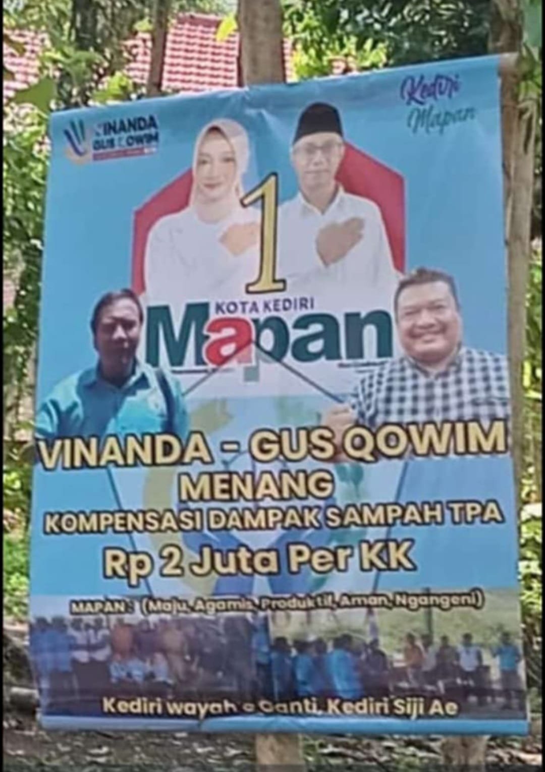 Janjinya jika paslon nomor urut 1 menang akan memberikan Dana Kompensasi Dampak Sampah (DKPS) sebesar Rp 2 juta per KK kepada warga yang terdampak bau tidak sedap dari Tempat Pembuangan Akhir (TPA) Pojok.