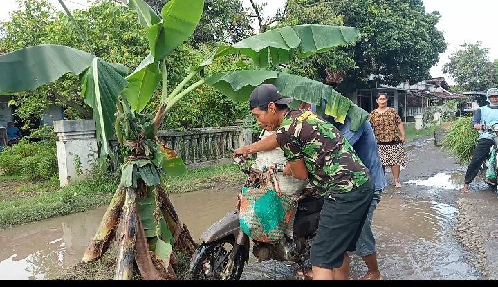Kenapa bisa begitu ?. Ini penjelasan para warga yang pada hari ini ( Selasa,3/02/2026) berkumpul dan berekpresi menanami belasan pohon pisang di titik lobang lobang jalan yang sudah berubah seperti kolam.